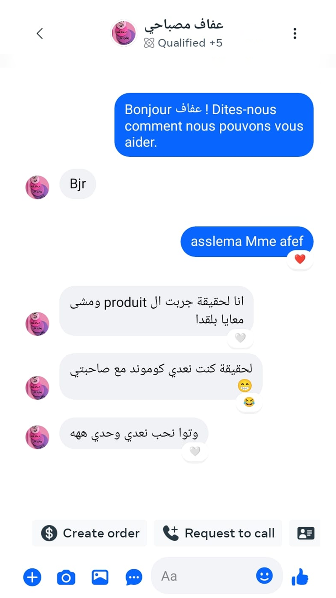 Commandez via Messenger en moins d'une minute. Paiement à la livraison, partout en Tunisie. Une conseillère vous répond personnellement, comme une amie qui s'y connaît.